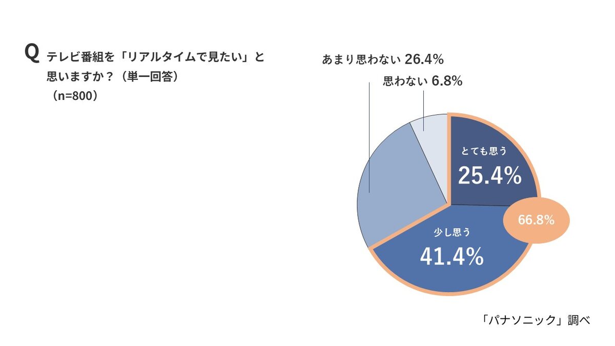 パナソニックは10月24日、「テレビ番組視聴に関する意識調査」の結果を発表した。近年、テレビ視聴のスタイルが多様化する中、Z世代をはじめとする若年層の間では「リアルタイムで視聴したい」という意向が強いことや、「推し活」が視聴行動に影響を与えている実態が明らかになった。