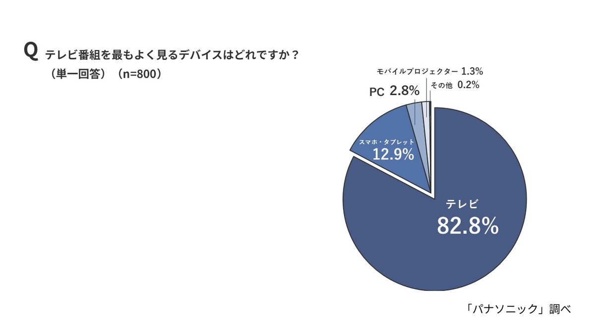 最もよく番組を視聴するデバイスは、「テレビ」が82.8%で圧倒的多数を占めた。