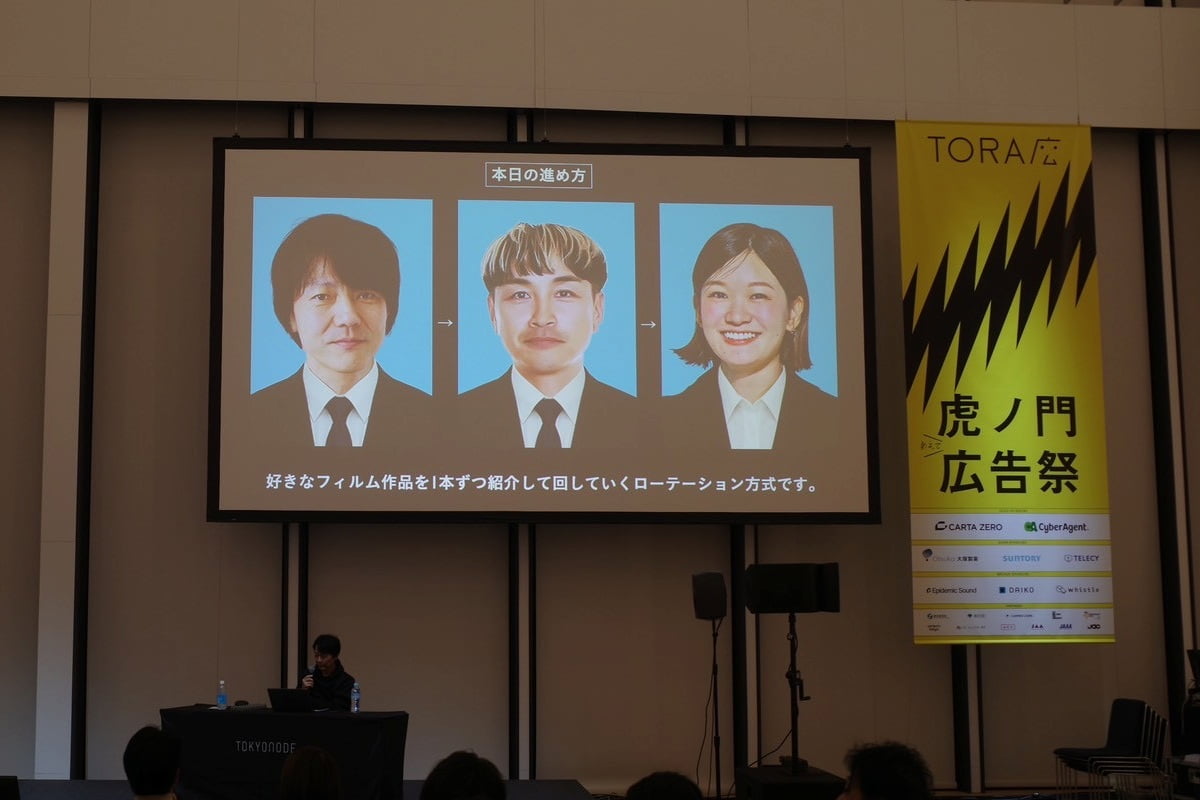 もしも面接で好きな広告を聞かれたら? 広告会社の選考あるあるについて、電通のグロースオフィサー澤本嘉光氏と博報堂で話題作を手掛けるCMプランナーの吉兼啓介氏、若者代表として電通のCMプランナーの杉井すみれ氏がカンヌライオンズのCMを上映しながら副音声で解説するセッション「もし面接で『好きなカンヌライオンズのCMは何ですか?』と聞かれたら。」が虎ノ門広告祭の6日目の10月23日に開催された。