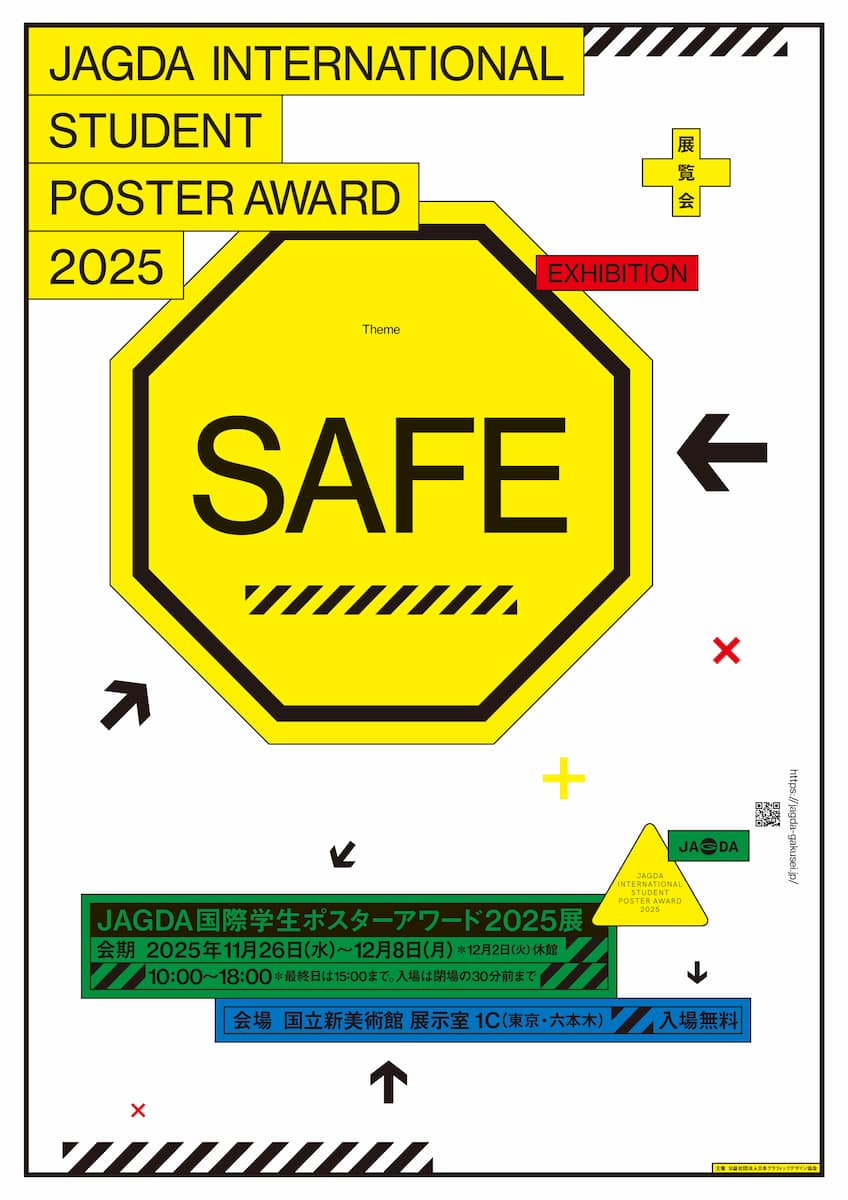 2025年のテーマは「Safe」。過去最多となる世界29の国と地域から2570人・3466 作品の応募があった。永井一史氏(審査員長)やひびのこづえ氏、菊地敦己氏、タイガー・パン氏、ジョン・ワーウィッカー氏、中村至男氏ら、JAGDA正会員と国内外の著名デザイナーを審査員に迎え、オンライン審査2回、ポスター実物による対面での審査を1回実施。審査の結果、グランプリ1作品、金2作品、銀5作品、銅10作品、審査員賞6作品、実行委員賞8作品、協賛企業特別賞26作品、後援団体特別賞1作品が選ばれた。上位作品や入選作品は以下の通り。