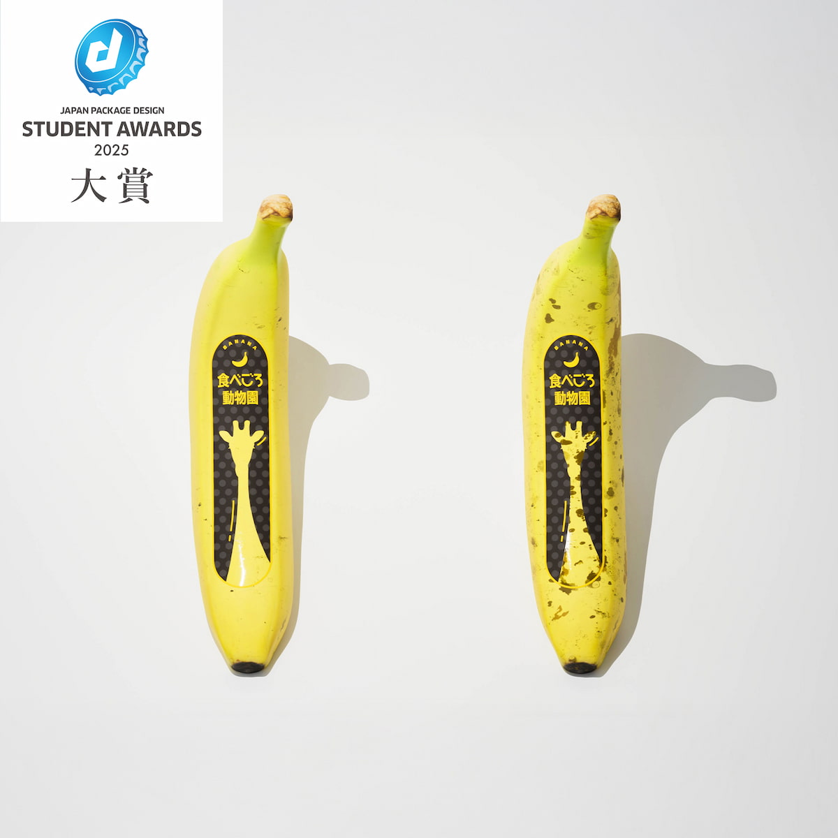 審査員の信藤洋二JPDA理事長(資生堂クリエイティブシニアクリエイティブディレクター)は「シュガースポットの誤解を正し、バナナの食べ頃をスマートに知らせるこのシールは、動物に模様が現れるまで待つ時間もデザインされています。さらに最小の材料で環境負荷を抑えており、アイキャッチ力も高く良く考え抜かれた作品です。動物が真っ黒になる前に食べてあげたくなるのが人情で、フードロスを減らす効果にも期待できるでしょう」と選出理由を述べた。