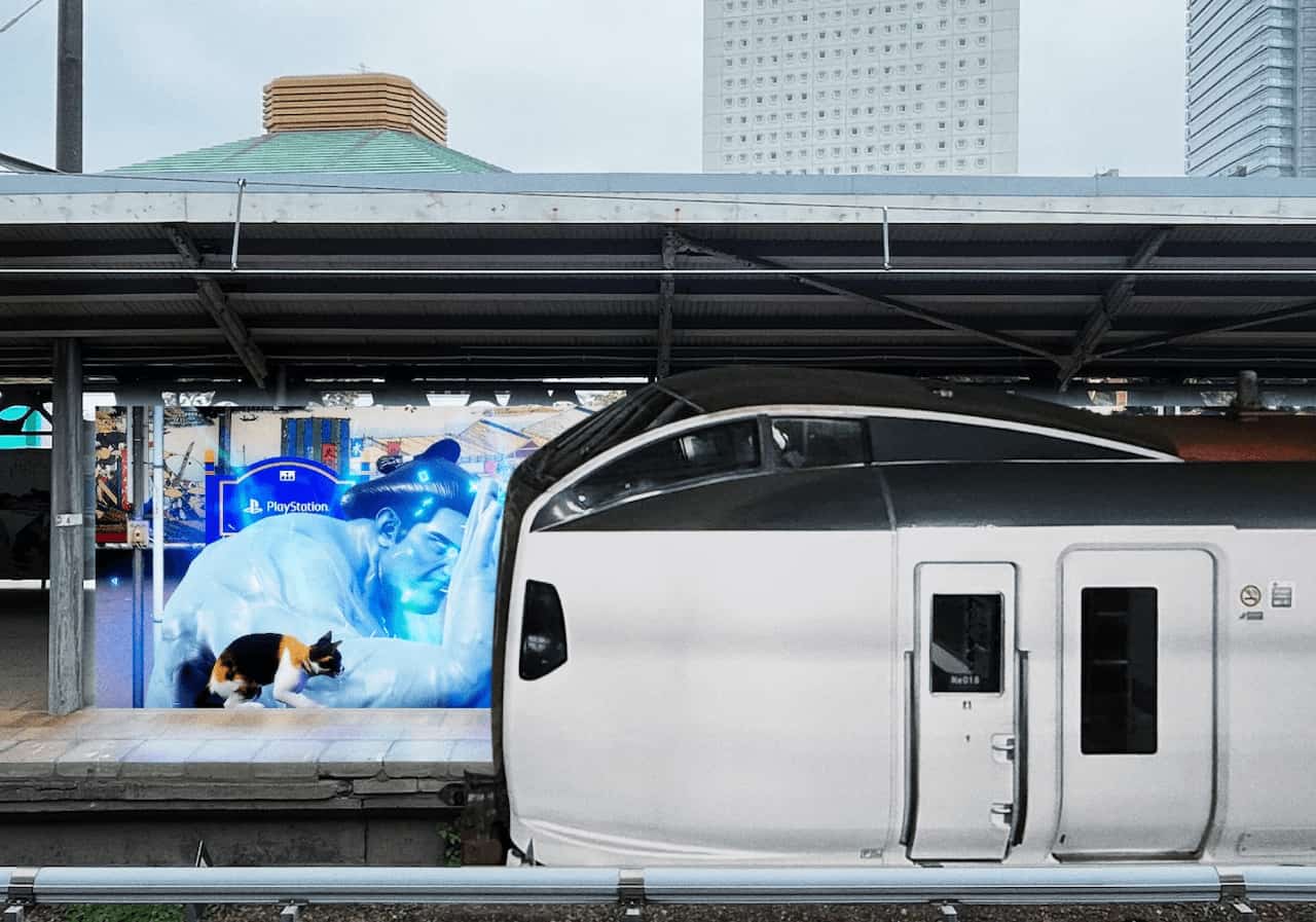 それに関連した日本でのOOH施策として11月8~14日の期間に実施されたのが、東京・JR両国駅における『PlayStation 5「魔人力士、降臨。」at両国駅』だ。