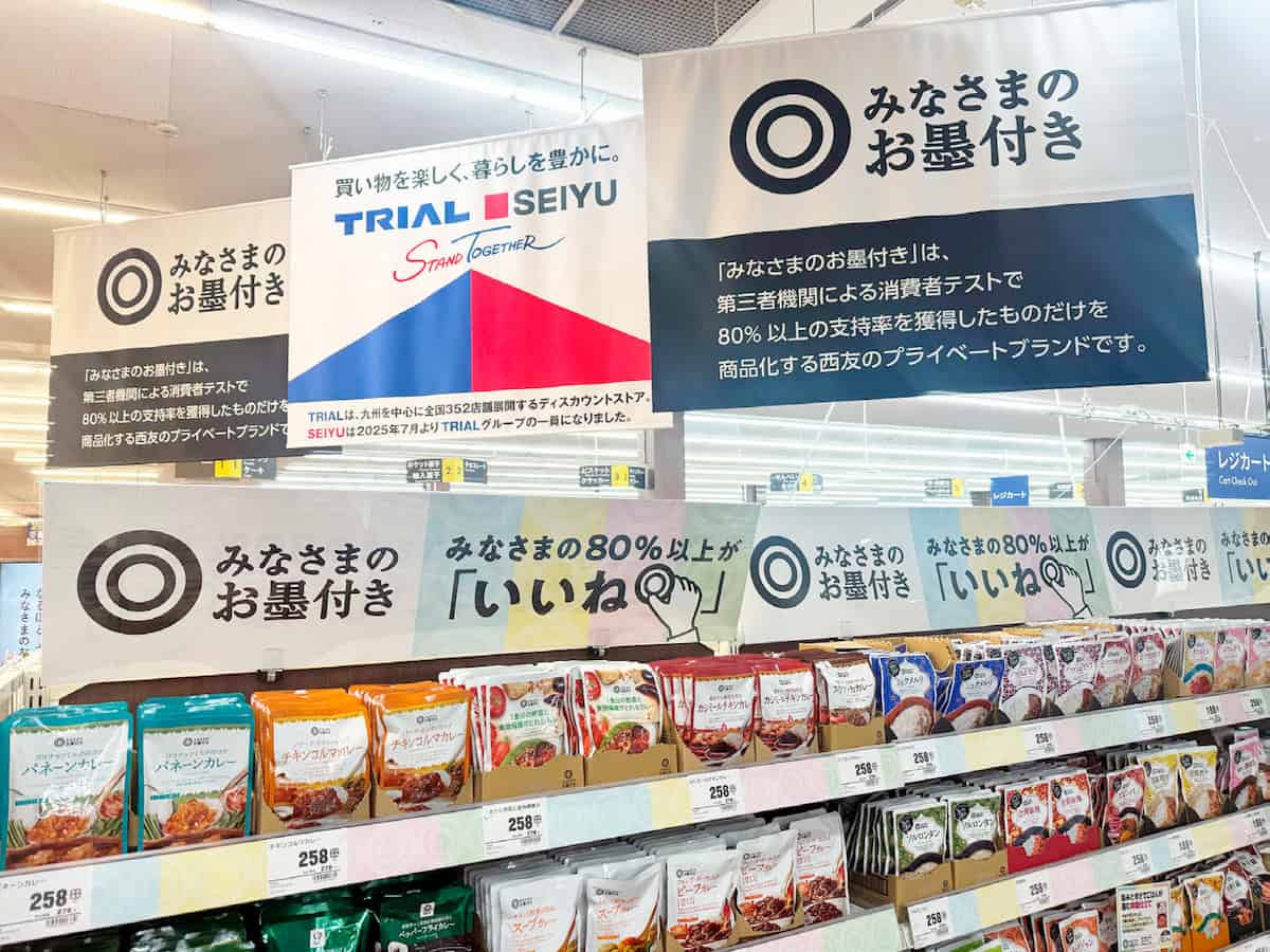 トライアルホールディングスの傘下でディスカウントストアを運営するトライアルカンパニーが9月5日、「メガセンタートライアル福岡空港店」をリニューアルオープン。それに伴い、全国に358店舗(2025年8月末時点)あるトライアル店舗で初めて、総合スーパーの西友の主力PB(プライベートブランド)「みなさまのお墨付き」を導入した。