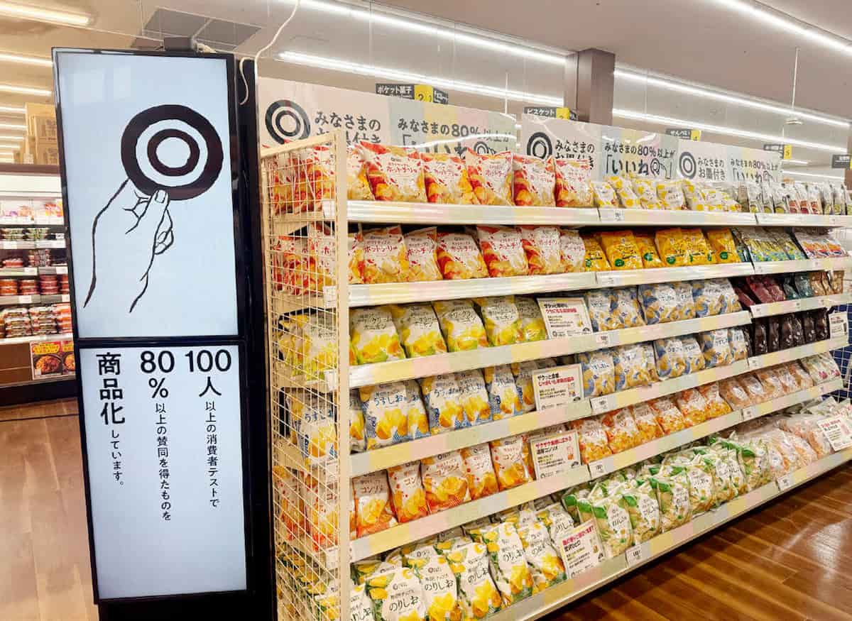 今回トライアル店舗に導入した「みなさまのお墨付き」は、第三者機関が実施する厳正な消費者テストで80%以上の支持率を獲得した「良いのに、安い」商品だけを提供するブランド。現在は約1100品目を展開しており、今回リニューアルしたメガセンタートライアル福岡空港店では、その中から約400品目を厳選し、販売する。