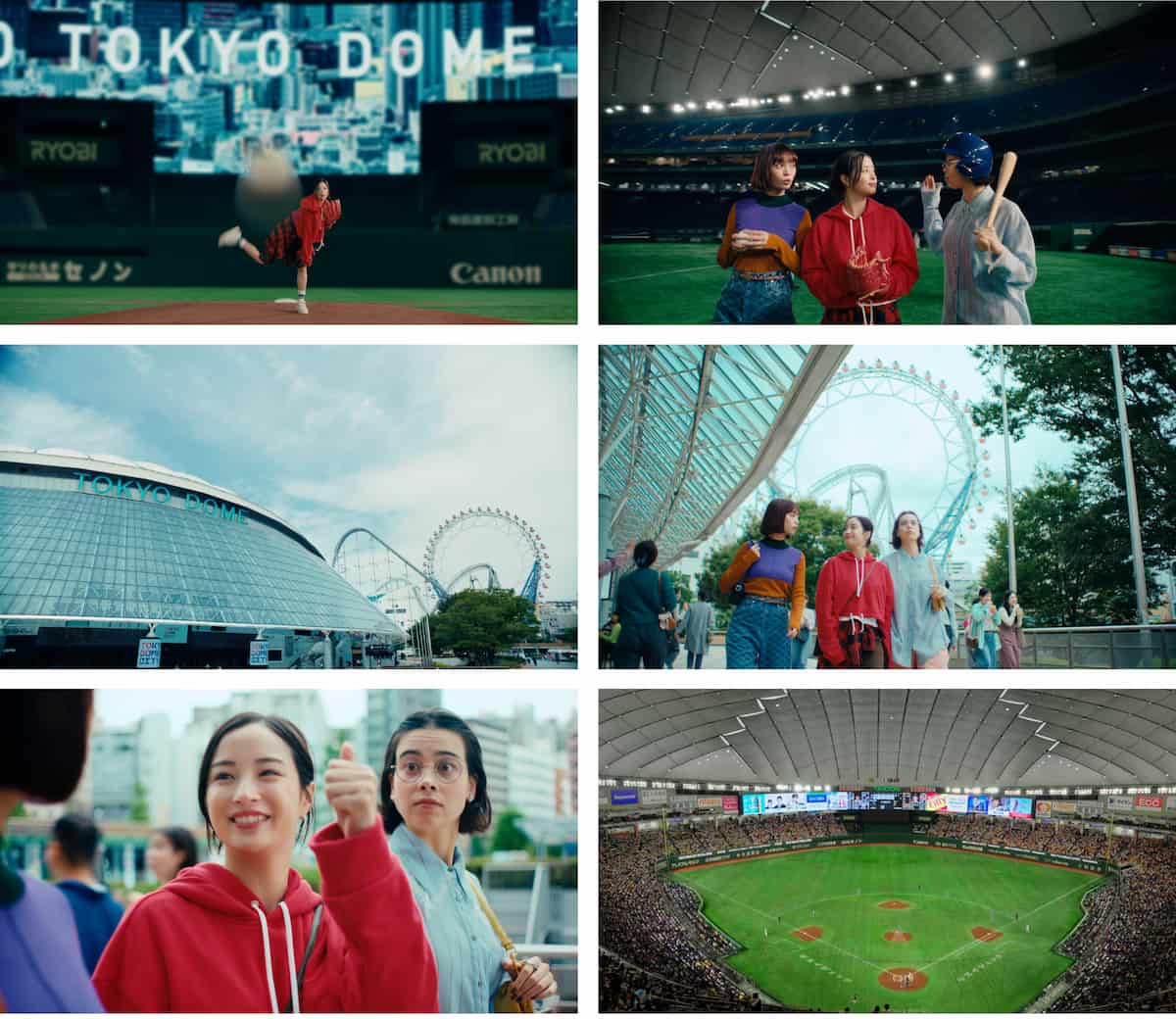 試合を終えた“三井のすずちゃん”は、「ていうか、もしかしてココも?」との友人の問いかけに、「ストライーク!」と大きくコール。三井不動産のスポーツ・エンターテインメントを活かしたまちづくりの魅力を自慢げに語るというストーリーだ。CM終盤では、東京ドームだけでなく、アミューズメント施設や温浴施設を訪れる様子も描いている。
