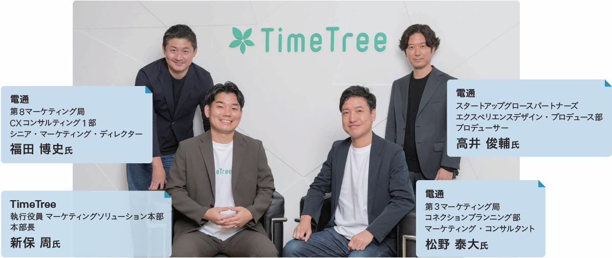 カレンダーシェアアプリ「TimeTree」の広告プラットフォーム「TimeTree Ads」が、2018年のリリースから7年を迎えた。同社は2024年11月より電通との協業を開始。カレンダーに登録される「未来の予定データ」の価値を最大化すべく、新たな広告商品の共同開発を推進してきた。今回のプロジェクトを牽引する4名に話を聞いた。