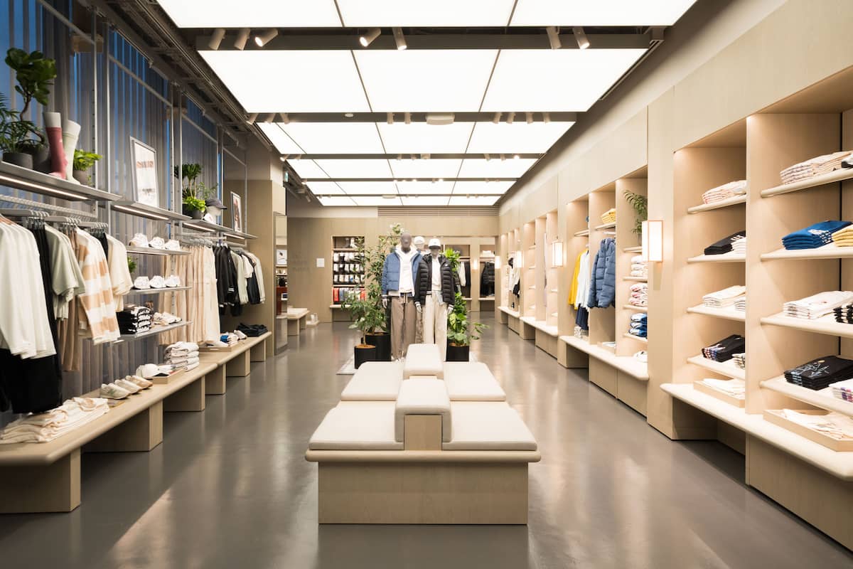 3階は、木の質感を活かした温かみある空間で、ライフスタイルシューズやアパレルを展開。ブランドカルチャーやアーカイブを感じられるディスプレイが特徴だ。