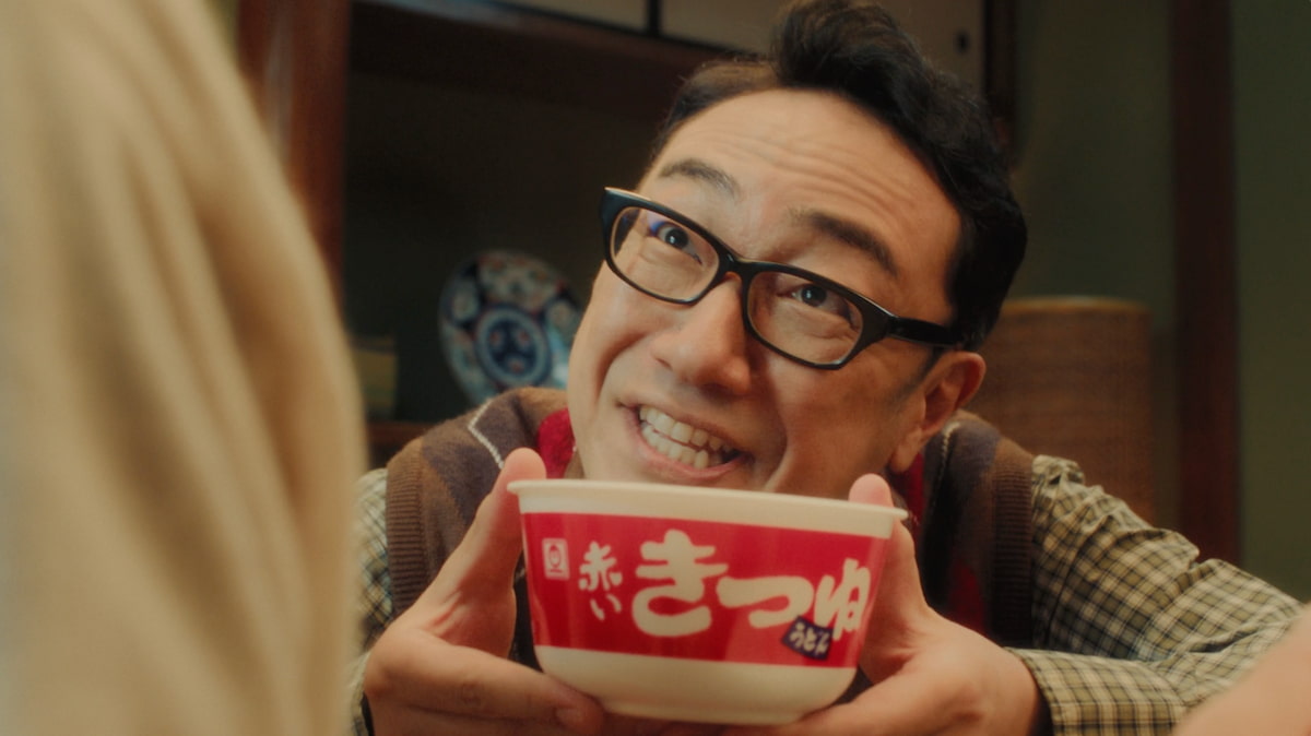 本CMは、最需要期である年末に、「赤いきつね緑のたぬき」をセットで想起してもらうための表現として“年越しうどん”という新鮮味のある切り口でアプローチすることで、「赤いきつね緑のたぬき」の購入意向を高めることを目的としている。