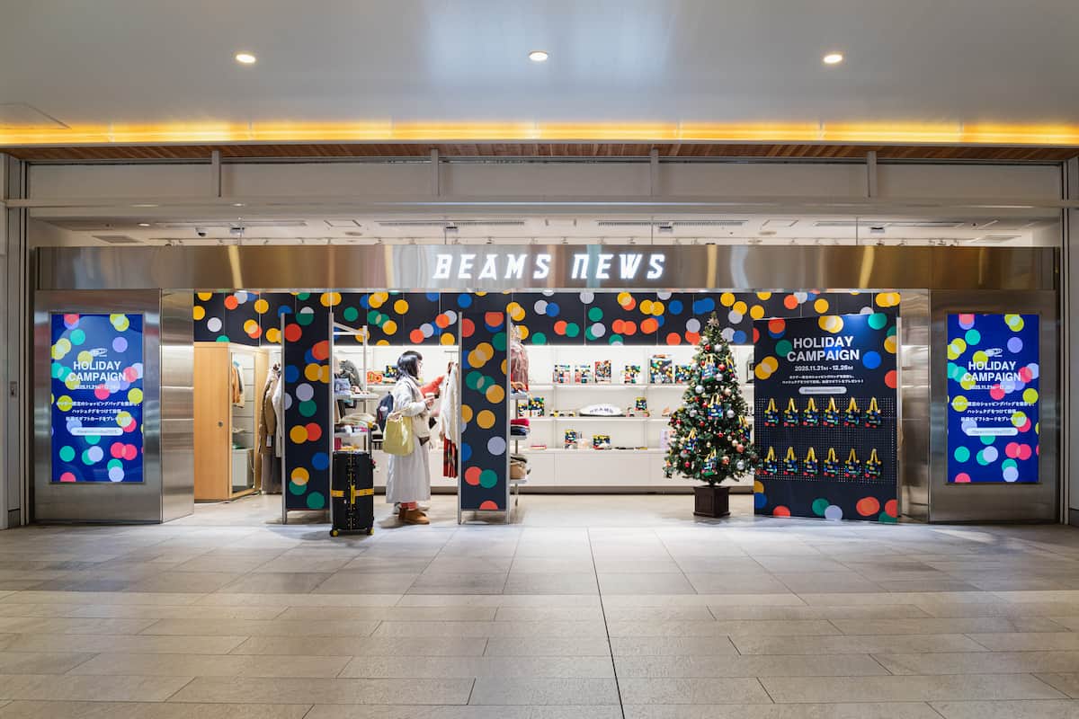 ビームスは12月5日、ホリデーシーズンの「BEAMS HOLIDAY 2025」キャンペーンにおいて、店舗施策とギフトコンテンツ、オンラインでの買い物をサポートするデジタルサービスを開始した。ホリデーデザインでラッピングされる新宿の「ビームス ニューズ」では、12月26日まで「スーパーミニショッピングバッグ」を配布する。