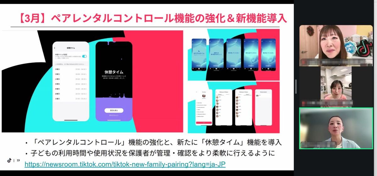 報告会では、2025年に実施したセーフティ関連のアップデートについて解説があった。特に力を入れたのが、保護者が子どものアカウントの安全設定を管理できる「ペアレンタルコントロール」機能の強化だ。3月には「メンタルヘルス」の観点から、保護者が指定した時間帯に子どもの利用を制限する「休憩タイム」や、曜日ごとに視聴時間を柔軟に設定できるカスタマイズ機能を導入した。7月には、子どもが動画を投稿した際に保護者へ自動で通知が届く仕組みや、クイズ形式で安全機能を学べる「Well-being Missions」も追加している。