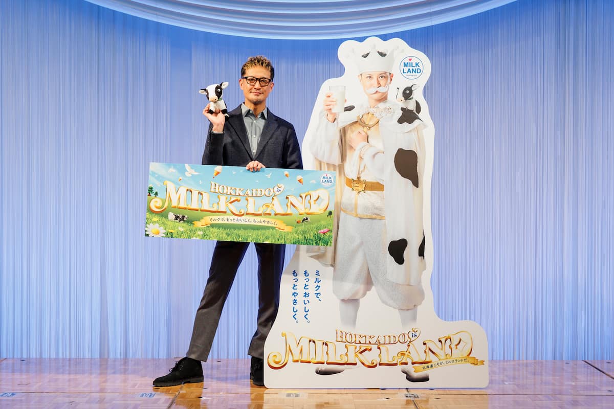 ミルクランド北海道 新プロモーション『北海道 is ミルクランド』発表会の様子。松岡さんも登壇し、新CMの発表とトークショーが行われた。