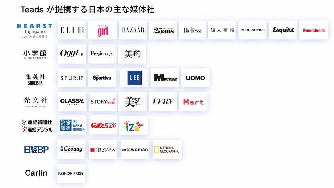 オープンインターネット上でオムニチャネル広告プラットフォームを提供するTeadsは、厳選した媒体のみとダイレクトパートナー契約を結ぶことで、広告主のブランドセーフティを保ち、広告体験を提供している。日本では、2014年からサービス提供を開始し、記事の中に配信面があるインリード型の広告やコネクテッドTV広告、そして2025年2月にOutbrain(アウトブレイン)と合併したことにより提供を開始したインフィード広告の展開を行っている。