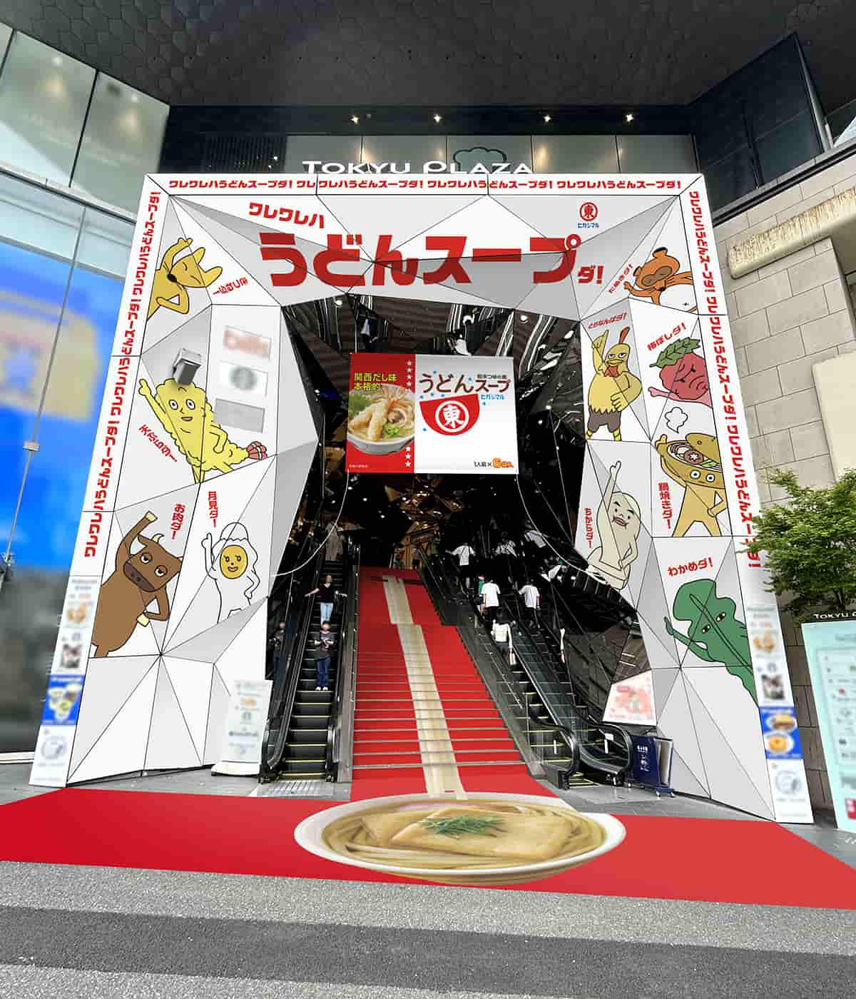 兵庫県たつの市に本社を置くヒガシマル醤油は、1月10日から23日までの期間、東京・表参道の東急プラザ表参道「オモカド」にて、主力商品「うどんスープ」の広告ジャックを実施する。