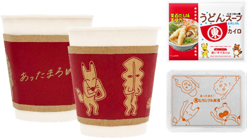また、一年で最も寒さが厳しいとされる「大寒」の時期に合わせ、1月10日から12日、および17日から18日の計5日間、同施設6Fの「おもはらの森」で体験型イベントを開催。ヒガシマルしょう油「うどんスープ」の無料試飲が提供されるほか、CMキャラクターをあしらった「オリジナルカイロ」が配布される。