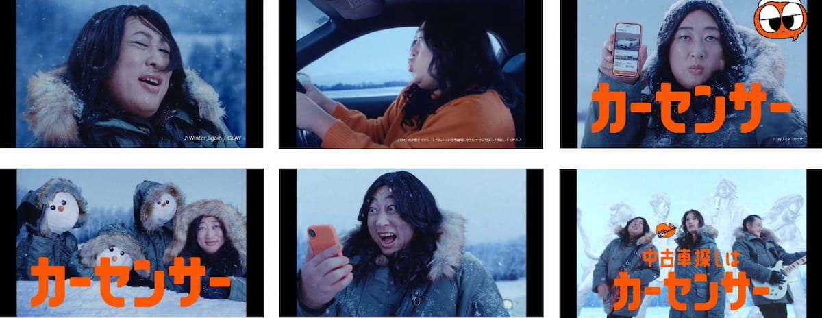 今回公開する5篇のうち、「Winter,again ナナオ」篇と「Winter,again ナナオ&ナナエ」篇では、GLAYの名曲『Winter,again』のMVをオマージュ。雪原を舞台に、“カーセンサー家族”が「理想の一台との出会い」を描くとしている。撮影ではGLAYメンバーの楽器を借りたほか、衣装にN-3Bを用いるなど、MVを想起させる演出を盛り込んだ。