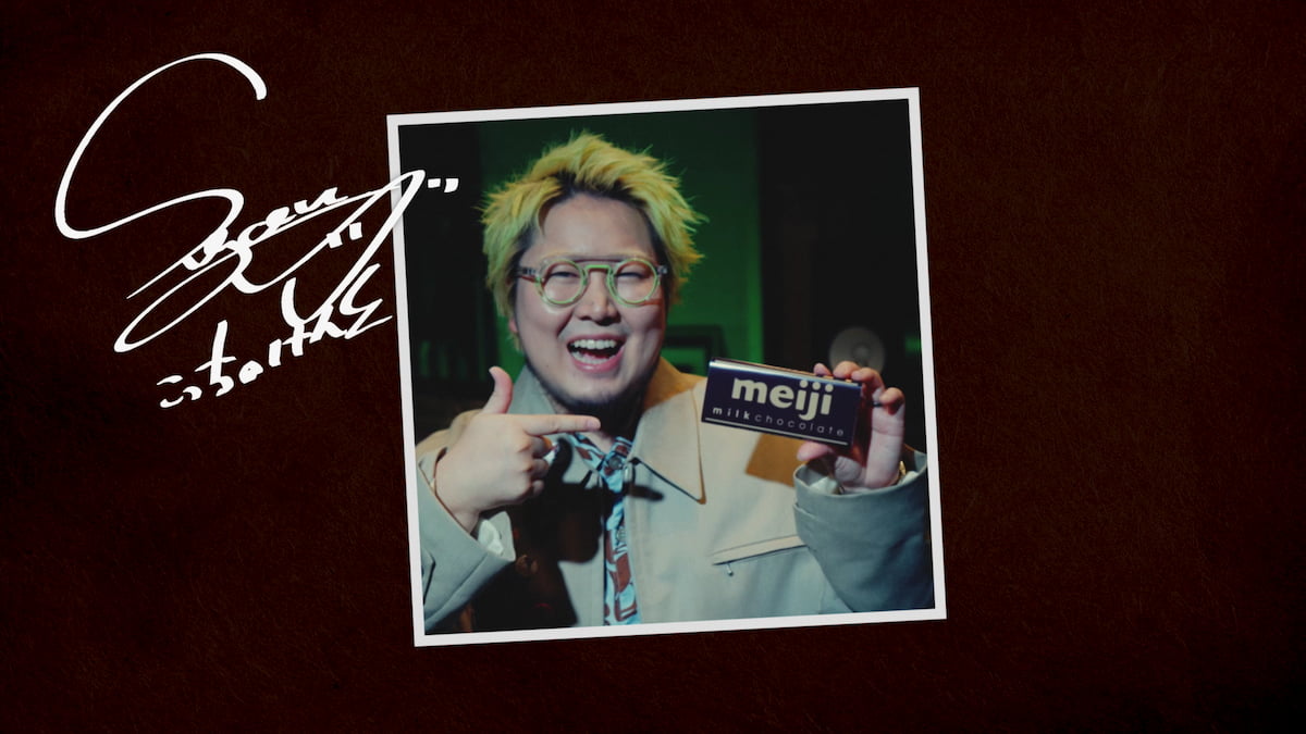 いよいよ100周年の年を迎えた2026年のトップバッターは、今年30歳という「節目」を迎えるこっちのけんと。動画では「明治ミルクチョコレート」との思い出を語りながら、「チョコレートは明治♪」のメロディをリズミカルに歌い上げる。