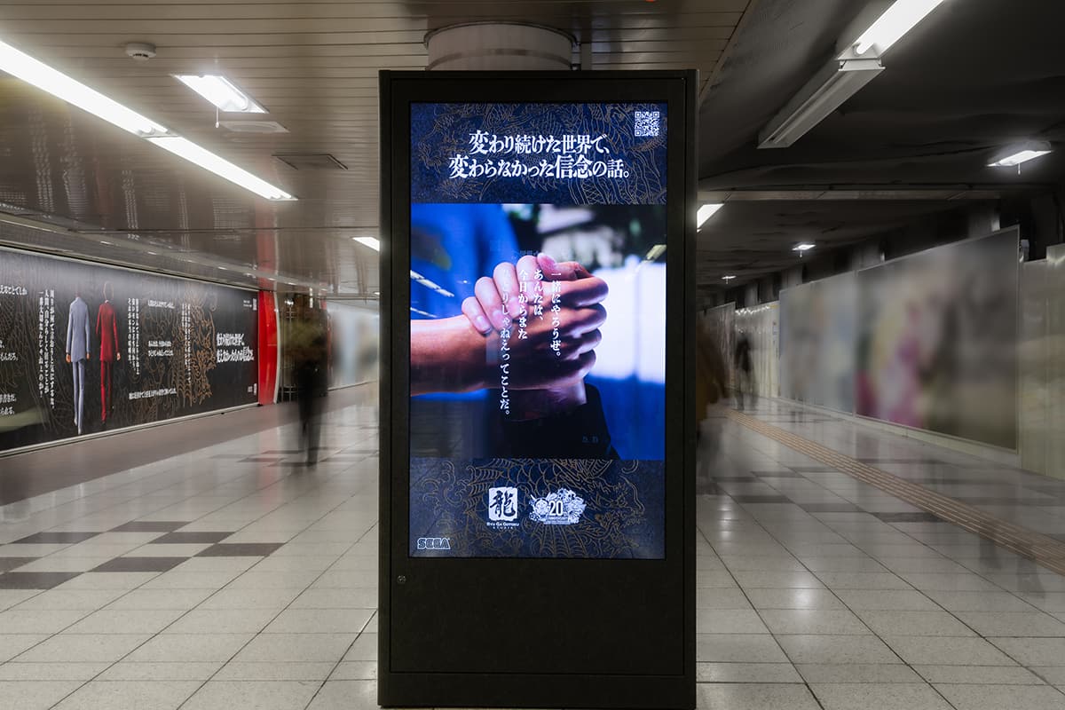 セガの人気ゲームシリーズ『龍が如く』は、2025年12月に誕生から20周年を迎えた。これに合わせ、セガは1月5日から11日にかけて、東京・新宿駅にて「信念」をテーマにした大規模な交通広告を展開。ブランドムービーと共に、最新作のプロモーションという枠組みを超え、シリーズが20年間一貫して描き続けてきた「美学」や「信念」というブランドの本質を問いかけた。