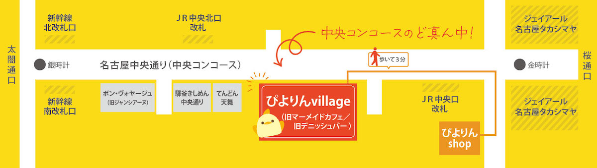 周年企画の目玉のひとつとして、6月頃には、JR名古屋駅中央コンコースに新店舗「ぴよりんvillage(ヴィレッジ)」を開業予定だ。店舗面積は、昨年8月に閉店した「ぴよりんSTATION カフェジャンシアーヌ」の約2倍。ぴよりんをはじめとするオリジナルスイーツやドリンクを楽しめるイートイン専用カフェに加え、100アイテム以上を扱うオリジナルグッズの販売スペースを併設するという。