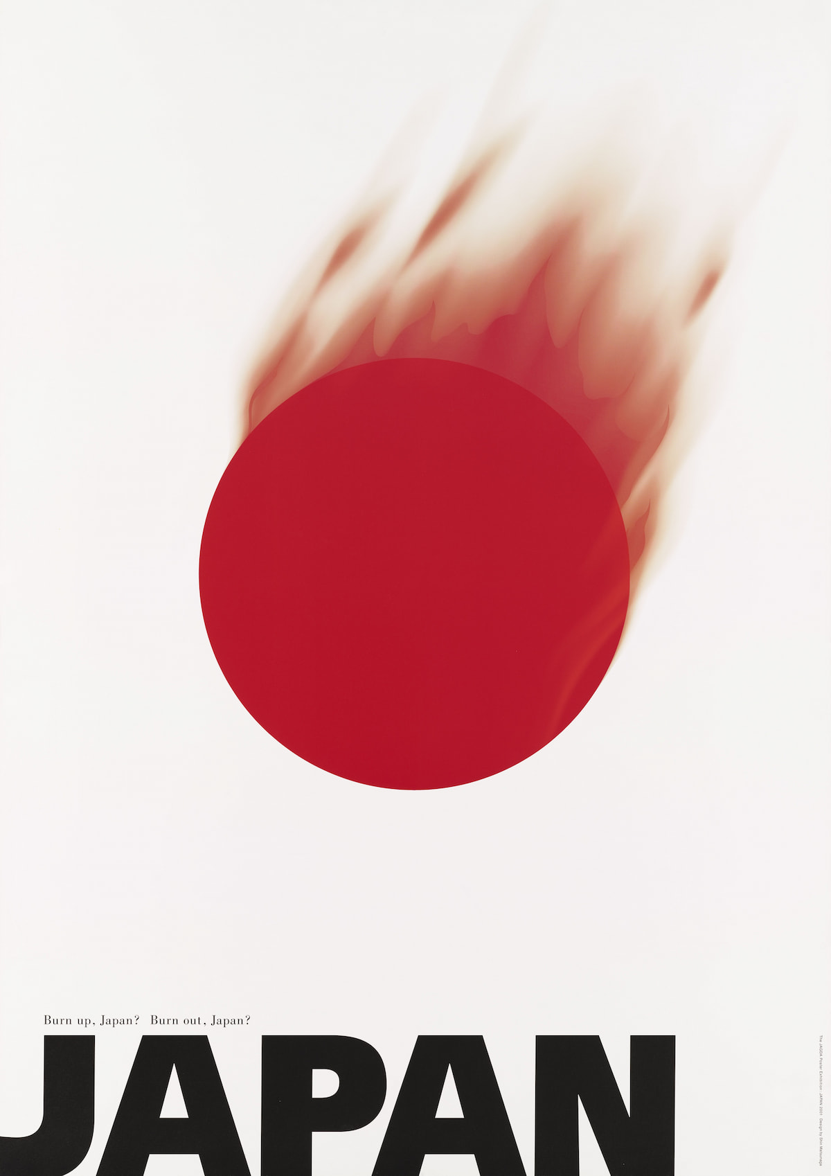 展覧会のメインビジュアル「Burn Up, Japan? Burn Out, Japan?”」(2001年)、 デザインは松永真氏。