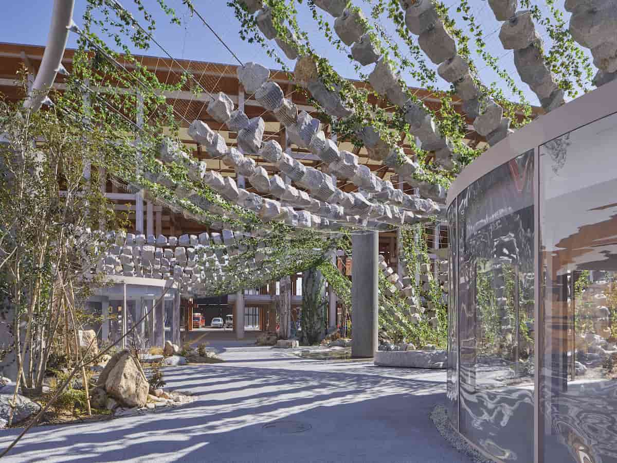 さらに「大屋根リング」の設計者 藤本壮介氏の設計コンセプトを説明する映像を上映すると共に、若手建築家が担当した3つの施設建築を紹介する。展示されるのは、工藤浩平氏による「休憩所2『Time-scape Pavilion』」、小俣裕亮氏による「トイレ3『レスポンシブ・ストラクチャー』」、米澤隆氏による「トイレ5『積み木のような建築』」。