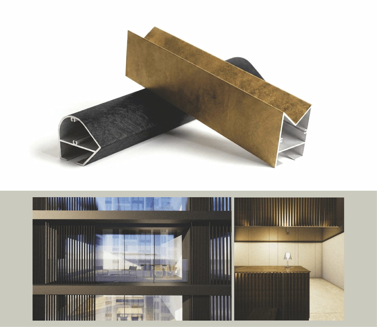 ・アルミ型を利用した金物に金属化粧仕上を施した提案/通山ひなの(デザイナー)/テーマ「多品種の金属表面に豊かなCMF表現をもたらす特許技術」フロント(新宿区)
