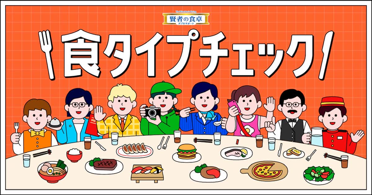 食タイプは、「グルメレポーター」「食アテンダー」「ご飯フッ軽」「お店ソムリエ」「オーダーリーダー」「ムードメーカー」「気配りマスター」「食卓カメラマン」の8つ。例えば「グルメレポータータイプ」は、「美味しさを言語化するのが上手で、グルメな知識も豊富。みんなの食事を会話でもっとおいしくしてくれるタイプ」。