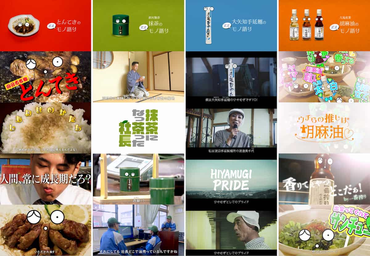登場するのは、美味しく食べられながら自ら食レポする「とんてき」、製茶会社社長が転生してしまった「抹茶」、ラップをすることで誇りを取り戻す「ひやむぎ」、料理たちにとっての “推しのアイドル” になった「胡麻油」など。地場産品を主役にしながらも、できるだけ多様な広告表現で、楽しく観られるものになるように工夫している。そして、キャラクター以外で登場するのは、地元企業やお店の人、四日市市職員やその家族など「地元の人」のみだ。