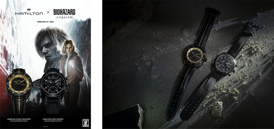 ハミルトンとのコラボ時計。作中では主人公のグレースとレオンが着用しており、ゲーム発売と同日の2月27日に発売予定。