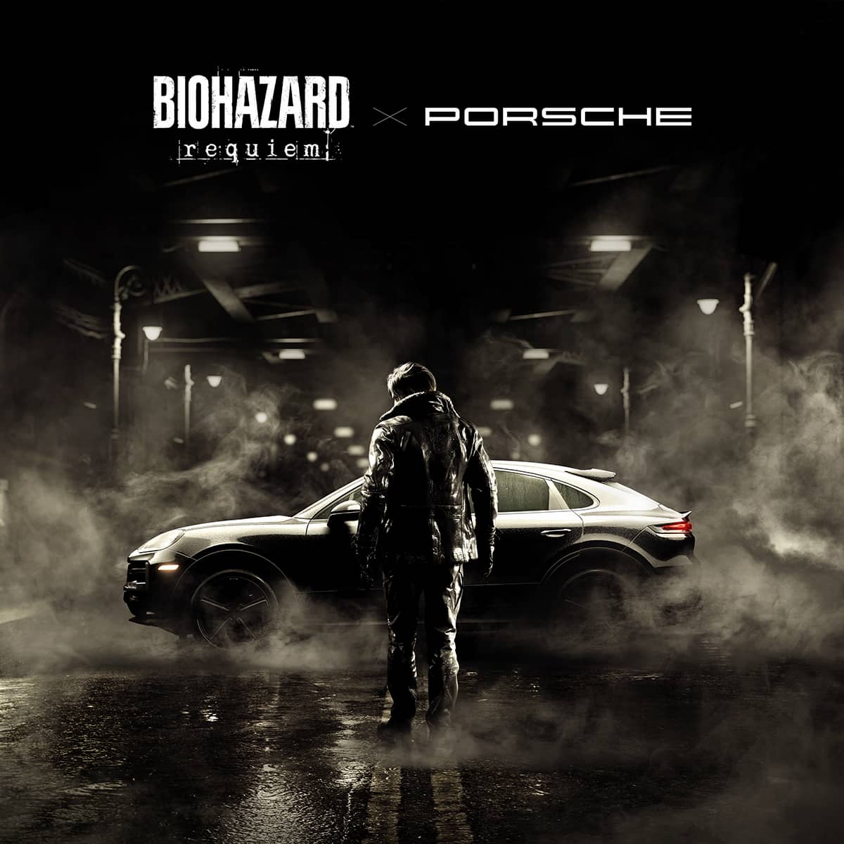 ポルシェとのコラボビジュアル。登場人物のレオン・S・ケネディが作中で乗車する。