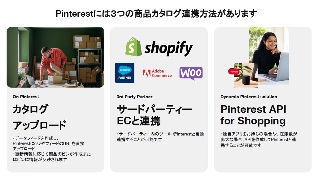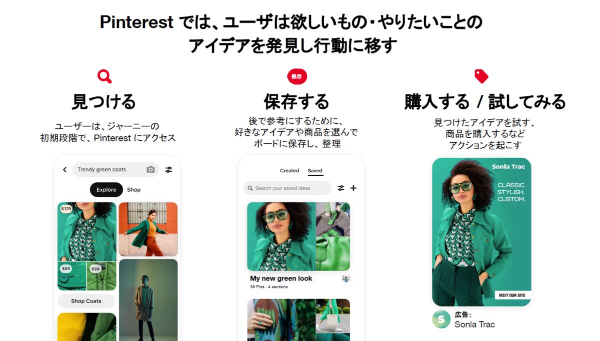 つまり、プラットフォーム自体がショッピングという一連の流れの中で、漠然と欲しいものを探す段階から、それを具体化し、検討し、実際に購入するところまでを一気通貫で支援できる。この点が、PinterestがECに強いと言われる最大の理由です」