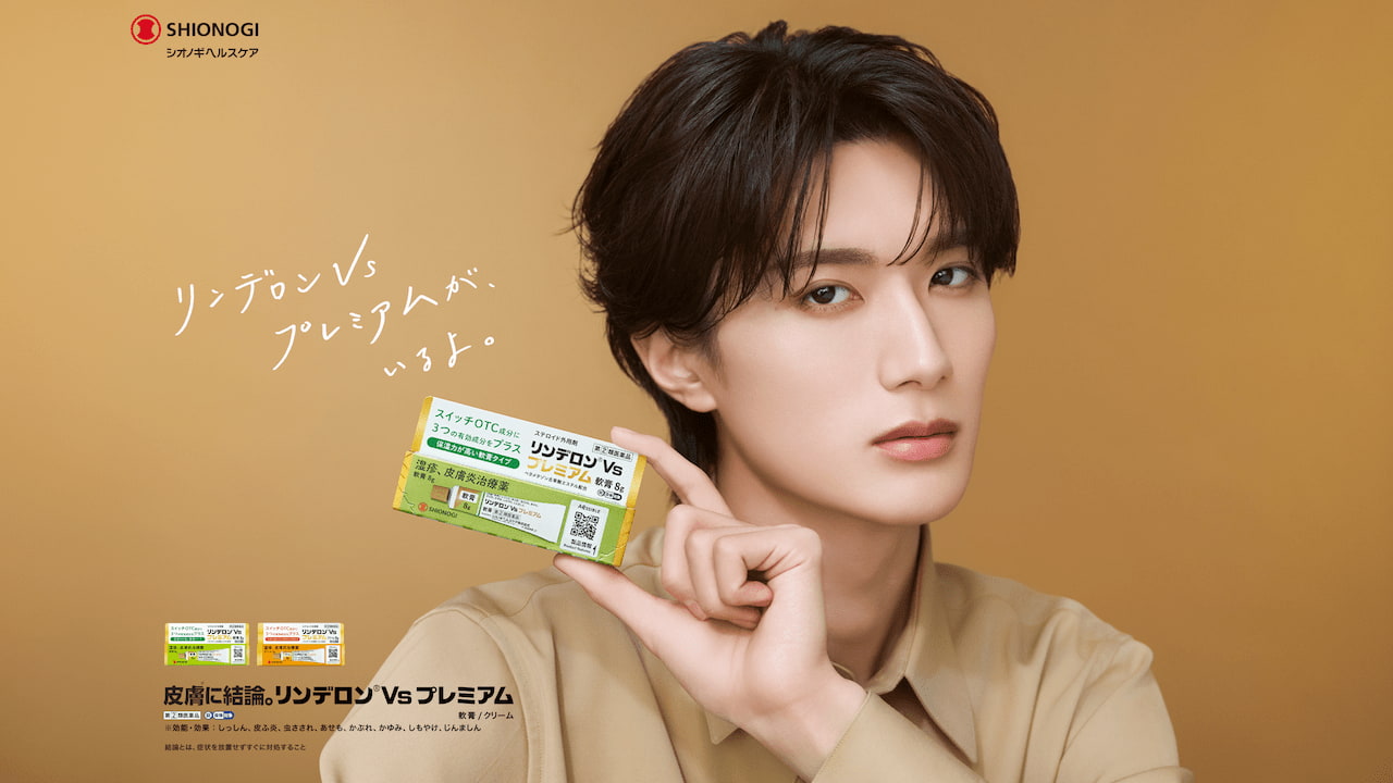 シオノギヘルスケアは、しっしん・皮ふ炎治療薬「リンデロンVs」シリーズの新WebCM2篇を2月16日から公開している。ダンスボーカルグループ「M!LK」の山中柔太朗をブランドとして初起用。商品を擬人化した “リンデロンの化身” として登場させた。皮膚トラブルの症状に寄り添うメッセージを優しく語りかける演出が特徴で、風邪などと比べて軽く捉えられがちな皮膚トラブルに対し、自主的なケアを促す狙いがある。