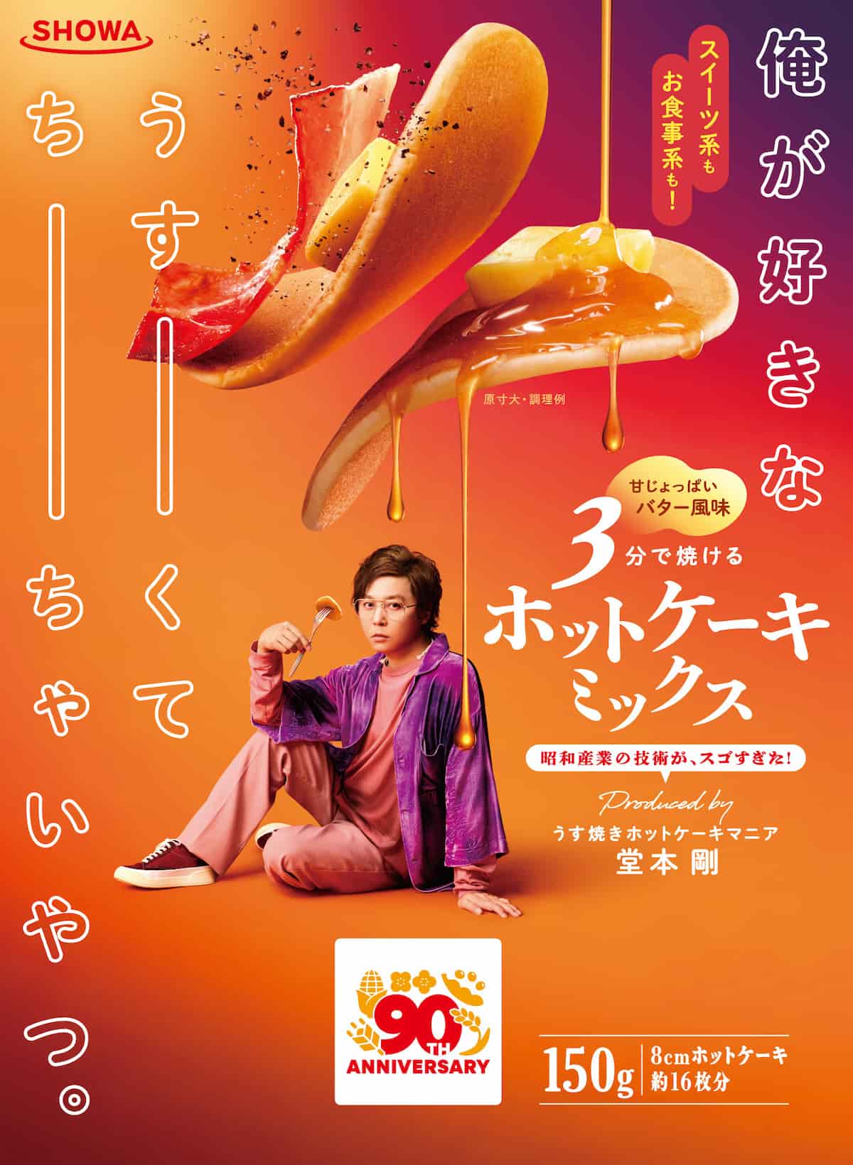昭和産業は、2026年2月18日に創立90周年を迎える。その事業の一環として、堂本剛によるプロデュース商品「俺が好きなうすーくてちーちゃいやつ。ホットケーキミックス」を3月1日から発売。それに伴いテレビCMも放送開始する。