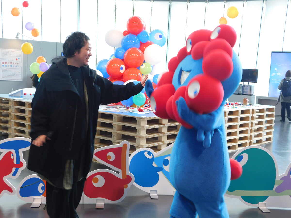 発表会の最後には、ミャクミャクが登場し、開催をお祝いする場面も。