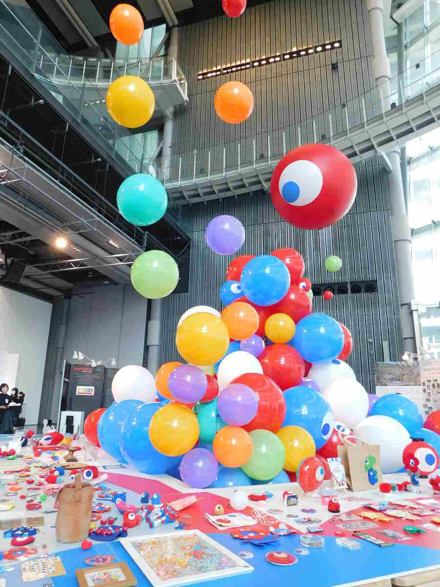 会場の中央、「ジオコスモス」の真下に設置された、「こみゃく」の二次創作作品とそこから生まれてくるたくさんの「こみゃく」たち(詳細は【後編】にて)。