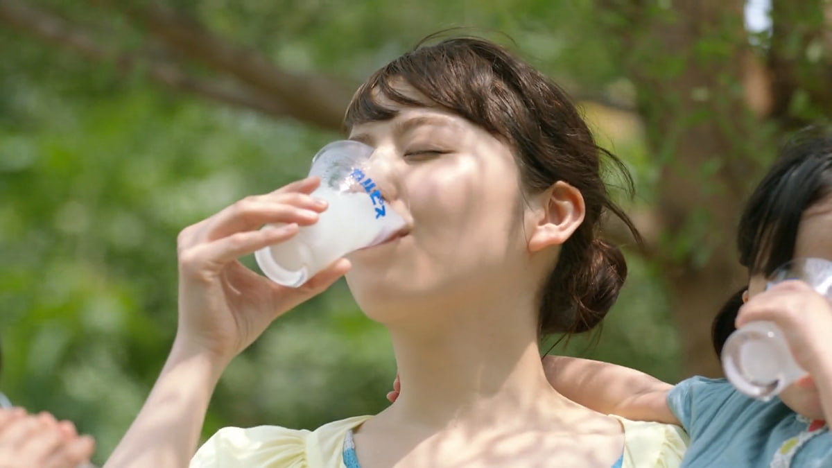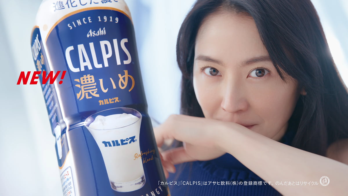 CMでは、従来の「カルピス」よりも濃いめに仕立てた味わいを特徴とする「CALPIS濃いめ」を前面に打ち出す。長年にわたりブランドの顔を務めてきた長澤さんが、カルピス好きも驚く新商品に向けて「カルピスすぎるぜ!」と力強く表現することで、これまでとは異なる角度から新たな魅力を伝える構成とした。