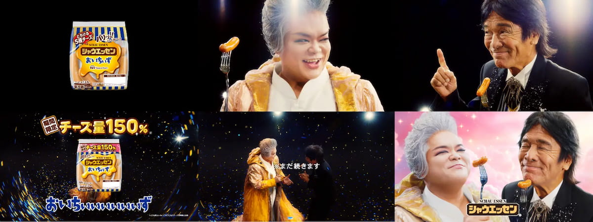 シャウエッセンおいちぃぃぃぃぃぃず「デュエット」篇(30秒)。第1弾「独唱」篇では岡本が伸びやかなロングトーンで “チーズの喜び” を表現し、続く第2弾「デュエット」篇では松崎が加わり、2人による初のデュエットが実現した。
