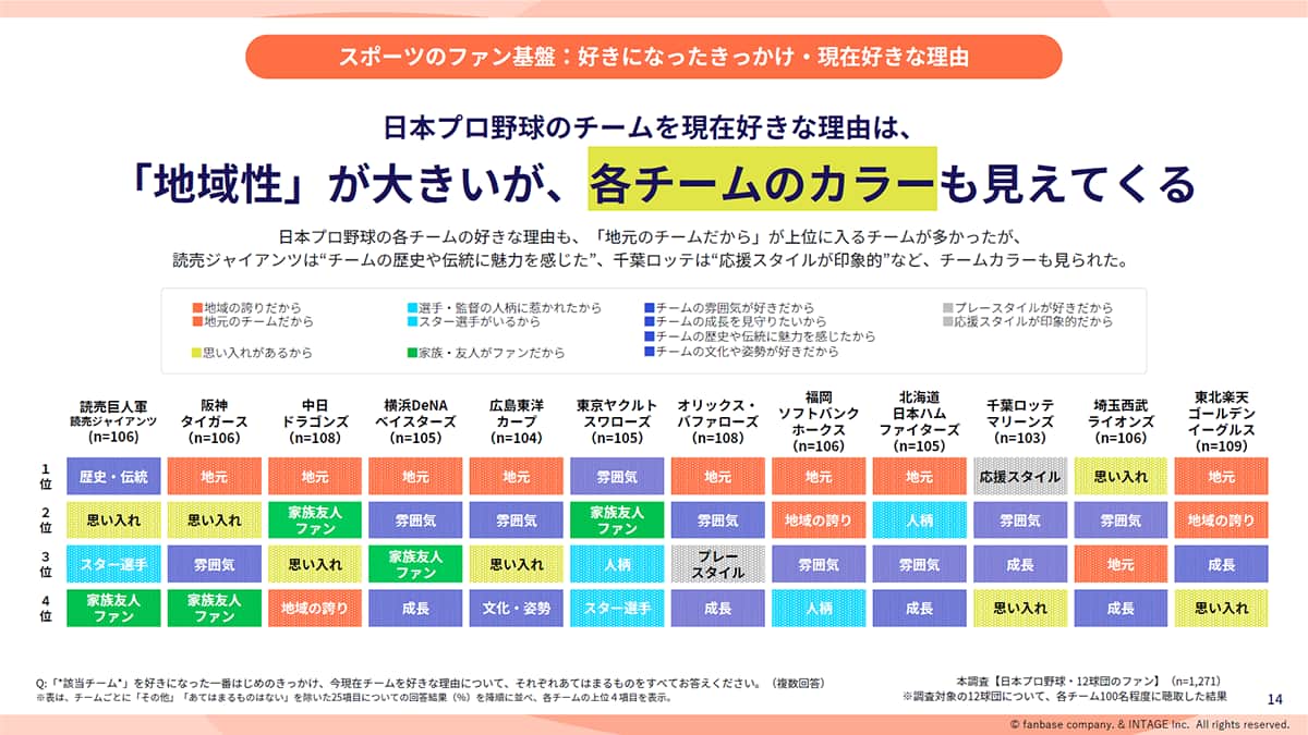 また、リーグ差だけでなくリーグ内のチーム差も浮かび上がった。佐藤氏は「好きな理由はチームごとに違い、応援の仕方も変わる」と示した。