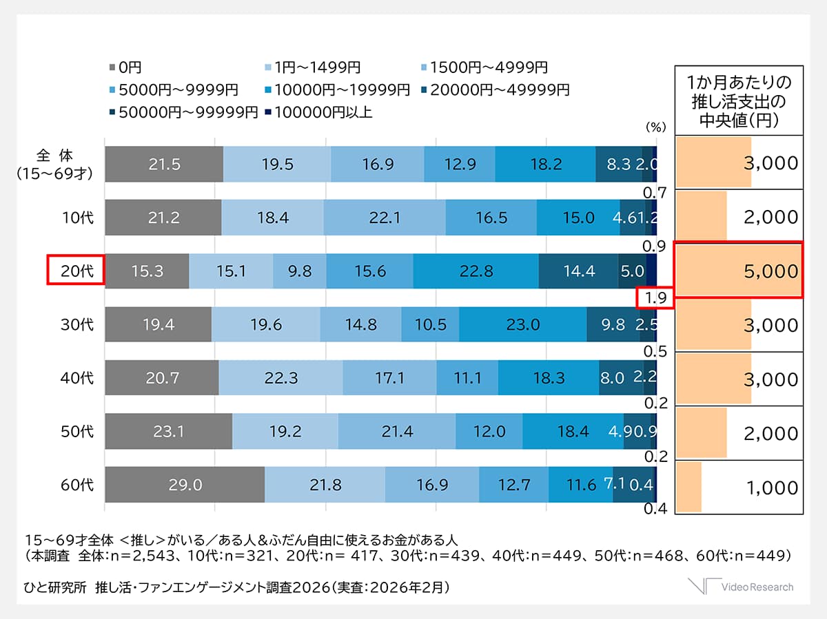 ビデオリサーチ ひと研究所調べ(2026年2月「推し活・ファンエンゲージメント調査2026」)
