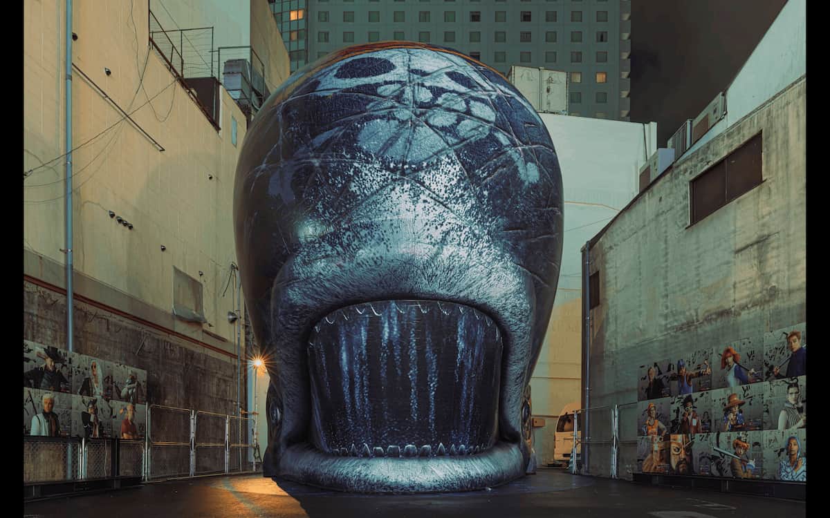 制作を手がけたカイブツのアートディレクター 木谷友亮氏は、過程についてこう振り返る。「屋外空間では、背景が抜けていたり、左右に建物などの比較対象物が存在したりするなどするため、4メートル程度の高さでは想像ほど大きく見えず、驚きやインパクトを生みにくい。そこで条例などの制約の範囲内で可能な限り高さを確保し、視覚的なインパクトを生み出すことを最も重視しました。また対象を大きく感じさせるためには、高さだけでなく、体積も重要な要素となります。そこで敷地を有効に活用し、高さと体積の双方を十分に確保できるラブーンのポーズについて、事前のCG検証を通じて注意深く検討を重ねました」。