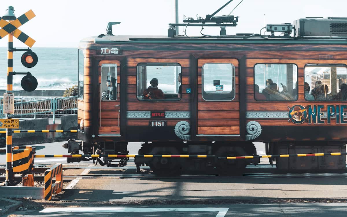 続いて3月9日からは、江ノ島電鉄で広告ジャックを展開。車体全体をルフィたちの船「ゴーイングメリー号」のようにラッピングしたほか、鎌倉駅・江ノ島駅・藤沢駅の主要駅では、「ローグタウン」「リトルガーデン」「ドラム島」と、登場する各島にちなんだ装飾を行っている。
