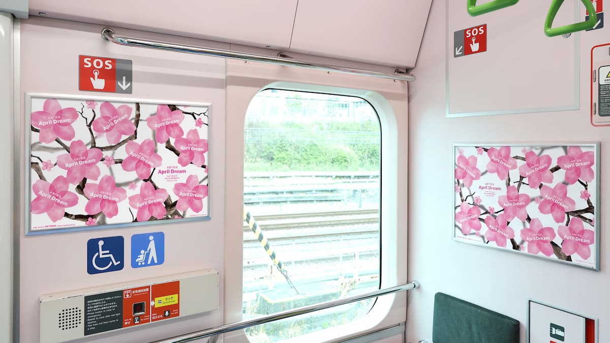 象徴的な企画のひとつが、山手線で展開する「Dreamトレイン」だ。PR TIMESは3月25日、2026年版の新デザインを公開した。2024年に始まった企画で、今年は4099人の個人の夢、406社の企業・団体の夢に加え、11人の著名人の直筆の夢も掲出する。中吊りやドア横ポスター、デジタルサイネージを桜で埋め尽くし、中吊りは枝の隙間をくり抜く仕様とすることで、車内に本物の桜が広がるような演出を施した。運行期間は4月1日から15日まで。