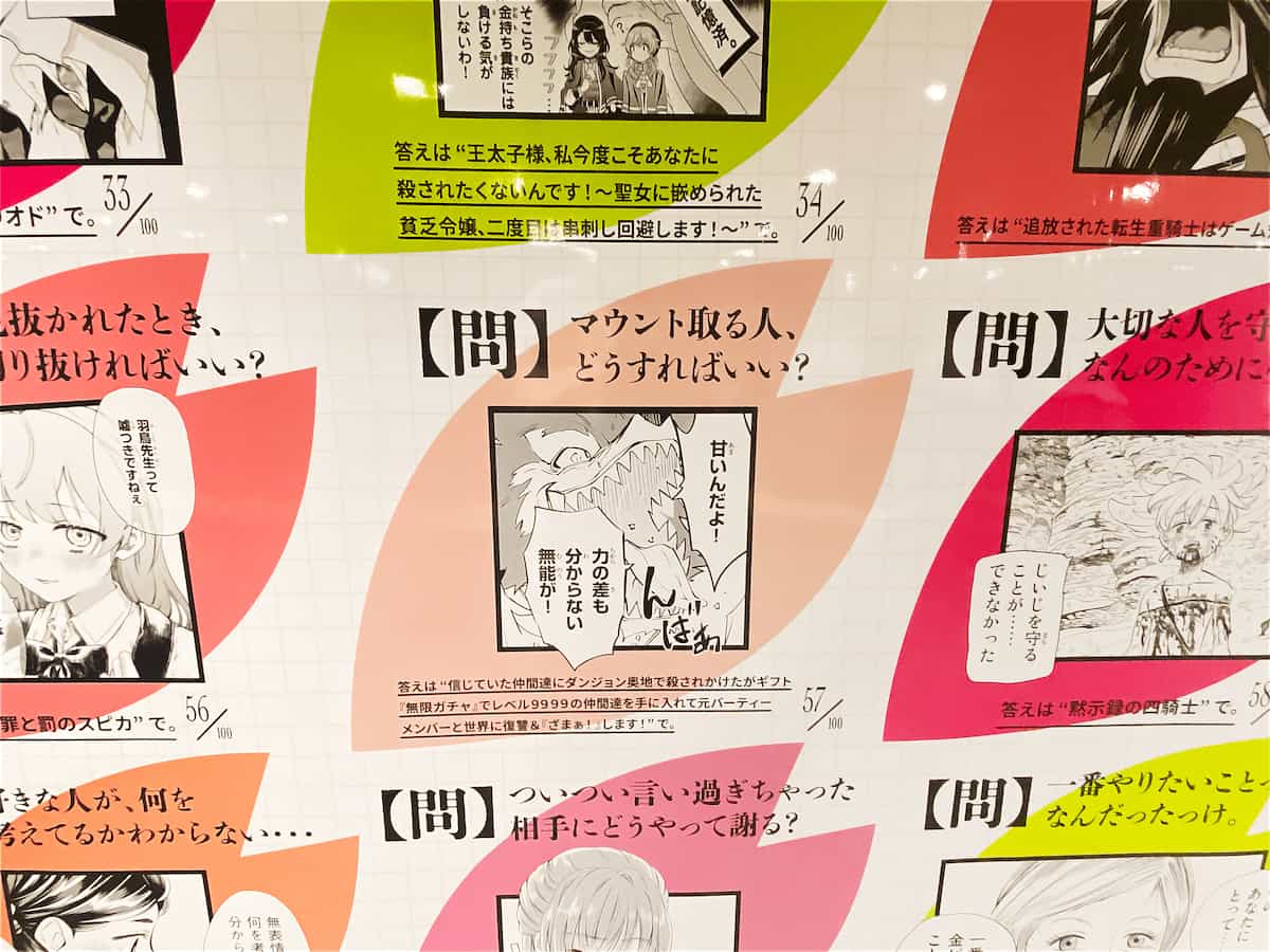 特にOOHでは、100の問いを並べることで、「マンガなら、どんな迷いも受け止めてくれるかも」と思ってもらうことを狙ったという。OOH掲出中には、自身の好きなキャラを目当てに足を運び、写真をSNSに投稿するケースも見られた。