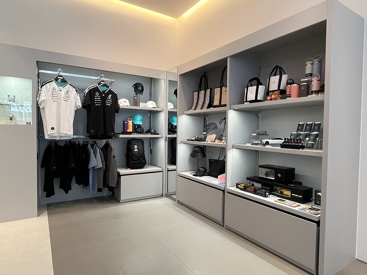 またF1チーム「メルセデス AMG PETRONAS」と、ファッションブランド「Y-3」がコラボしたラッピングカーも展示。「Y-3」は山本耀司氏とアディダスのコラボで生まれたブランドで、表参道ヒルズにも直営店を構えている。また「Mercedes-Benz Studio Tokyo」のスタッフも「Y-3」の服を着用する。