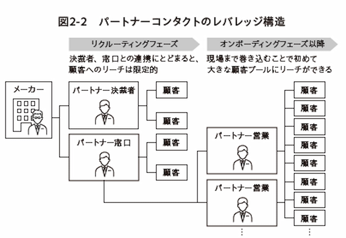 パートナービジネスを科学するための第一歩は、視点の転換だ。契約自体は「パートナー企業」と結ぶが、実際に商品を学び、顧客に提案し、案件を前に進めるのは「パートナー企業の担当者個人」である。本書では、この現場の担当者1人ひとりを「パートナーコンタクト」と定義している。