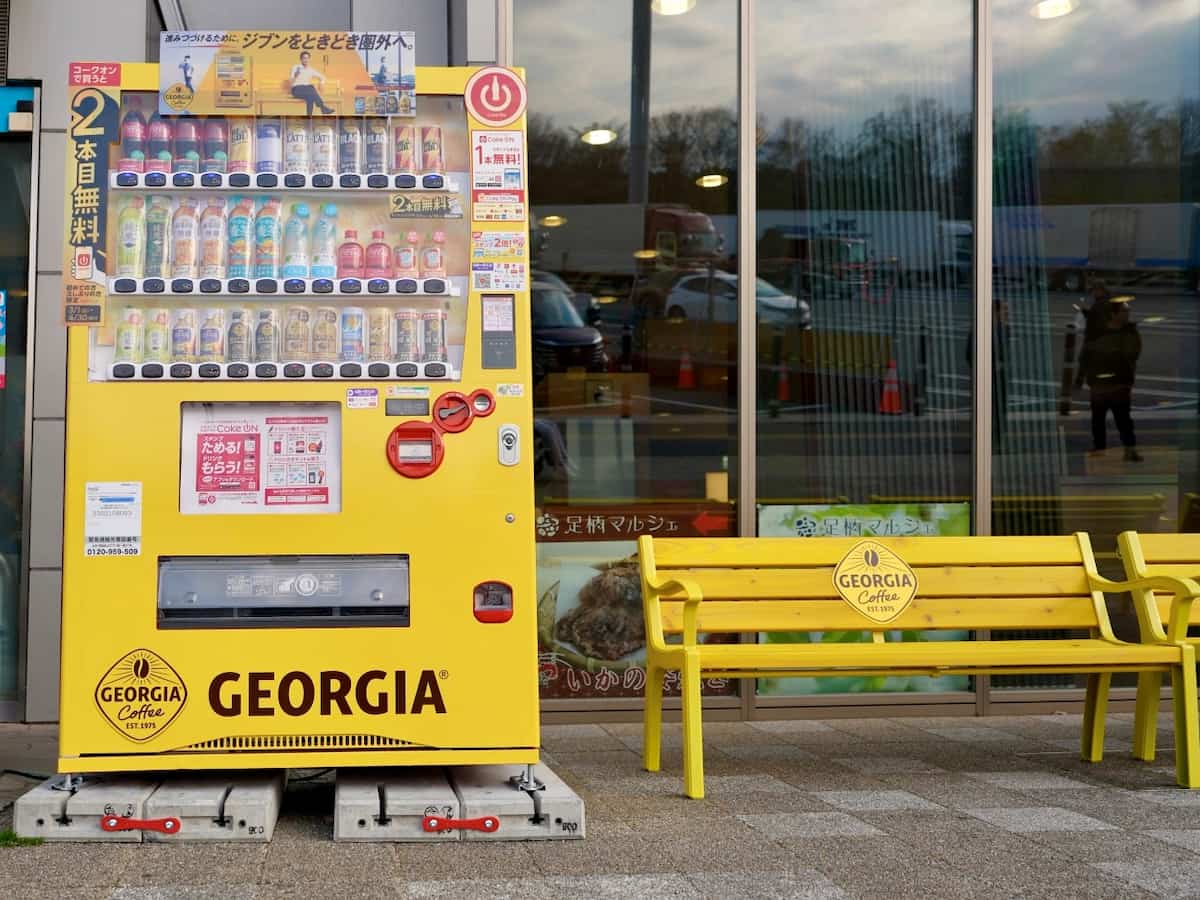 黄色い自販機とベンチ設置、ジョージアCMの “休憩” 再現「進みつづけるために。ジブンをときどき圏外へ。」