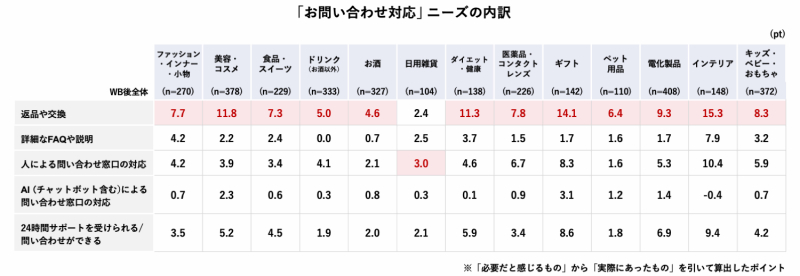 また13カテゴリー中12カテゴリーで「返品・交換」に関するニーズが最も多く、丁寧でスピーディなサポート体制への期待が強いことがわかった(図6)。