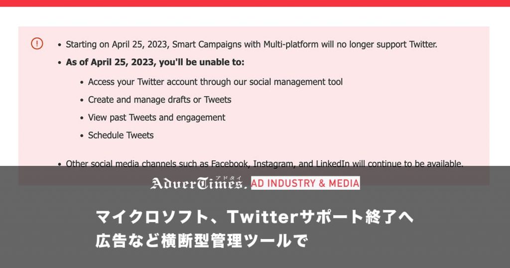 マイクロソフト、Twitterサポート終了へ 広告など横断型管理ツールで