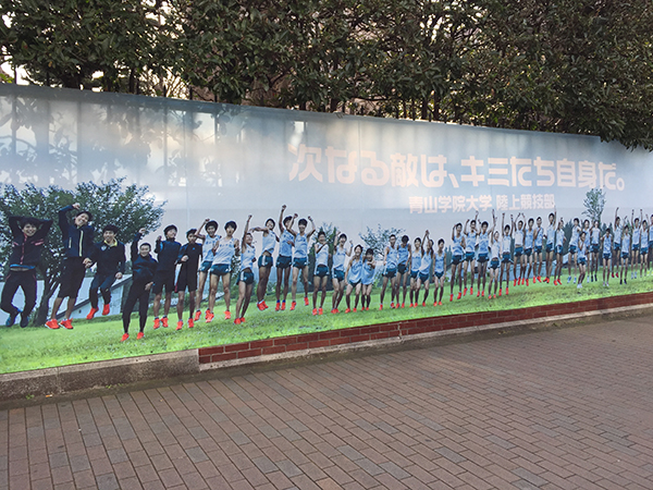 箱根駅伝優勝を祝う横断幕が、青山学院大学キャンパス正門に掲出中