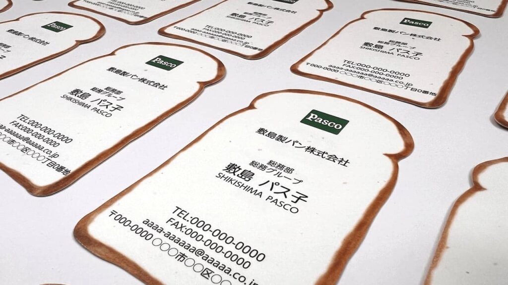 敷島製パン「パンの紙」で「食パン型の名刺」を作成、パンの粉をアップサイクル
