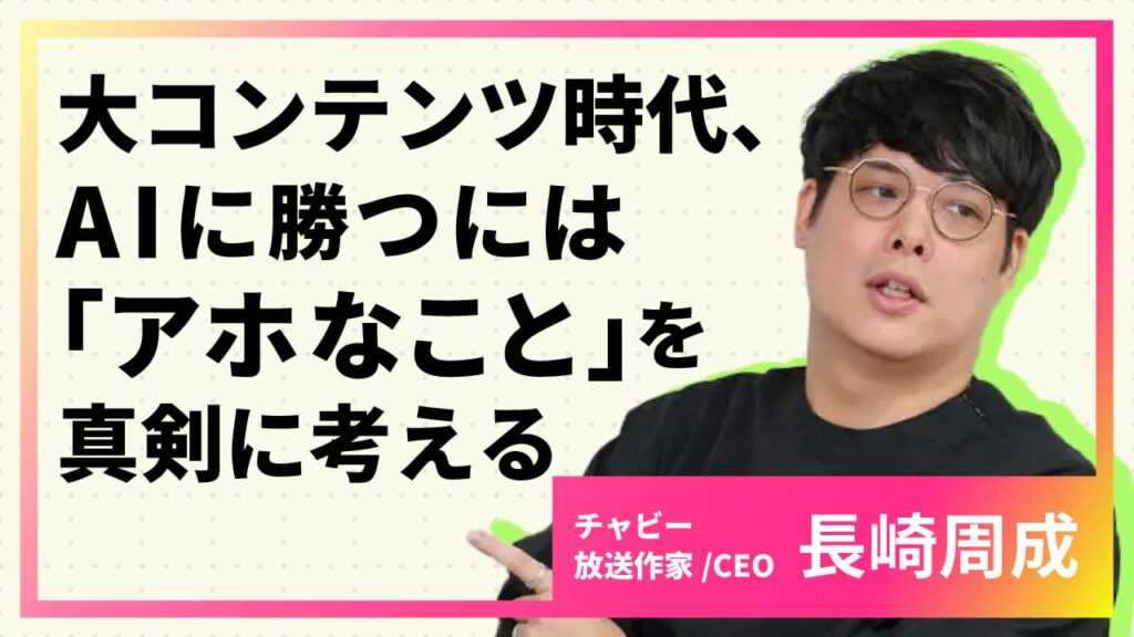 テレビ番組からYouTube、CMまで、メディアを縦横無尽に横断してヒットを飛ばし続ける株式会社チャビーCEO・放送作家の長崎周成さん。 -